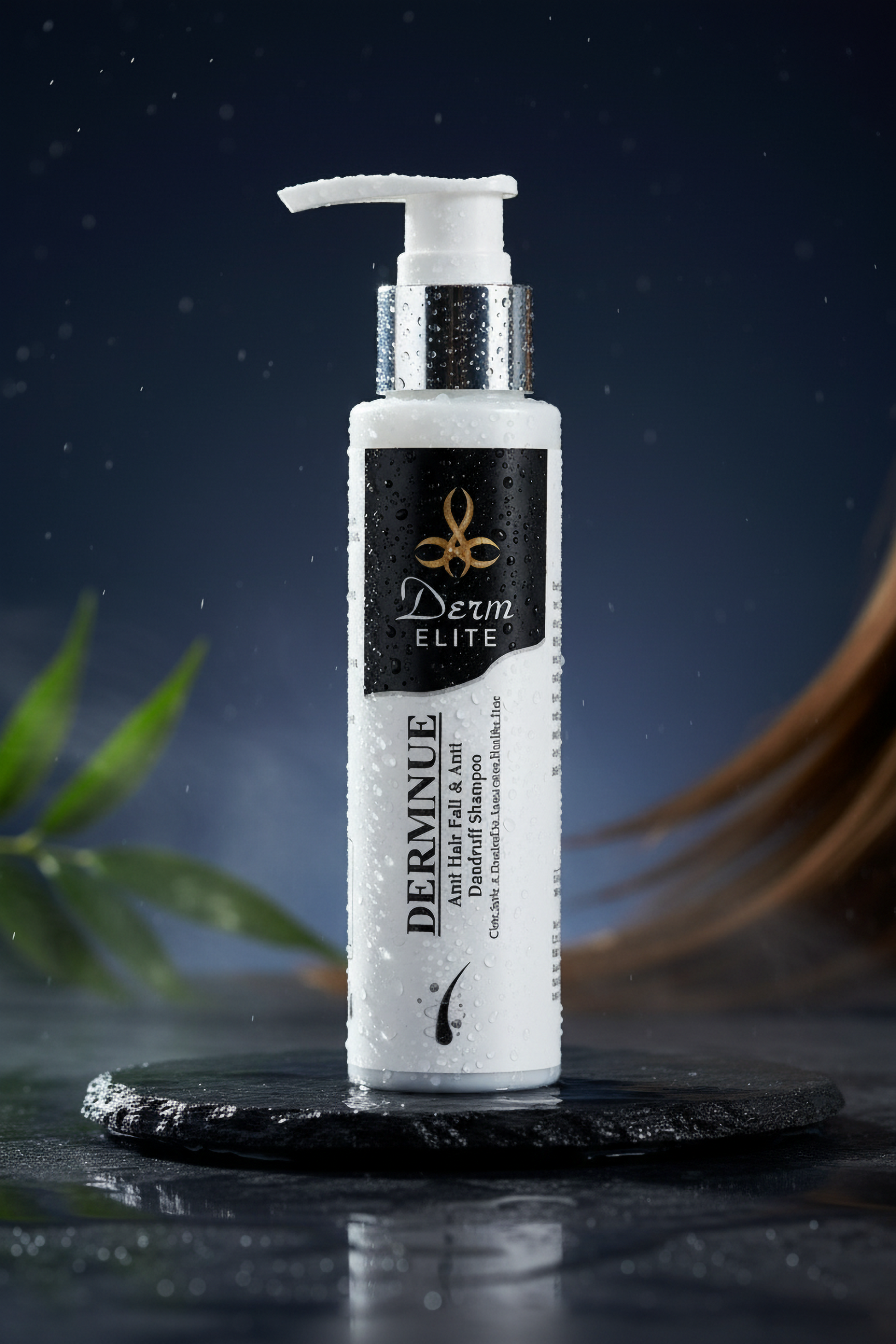 Experience the dual power of Dermnue™, formulated to fight dandruff, stop hair fall, and strengthen every strand.